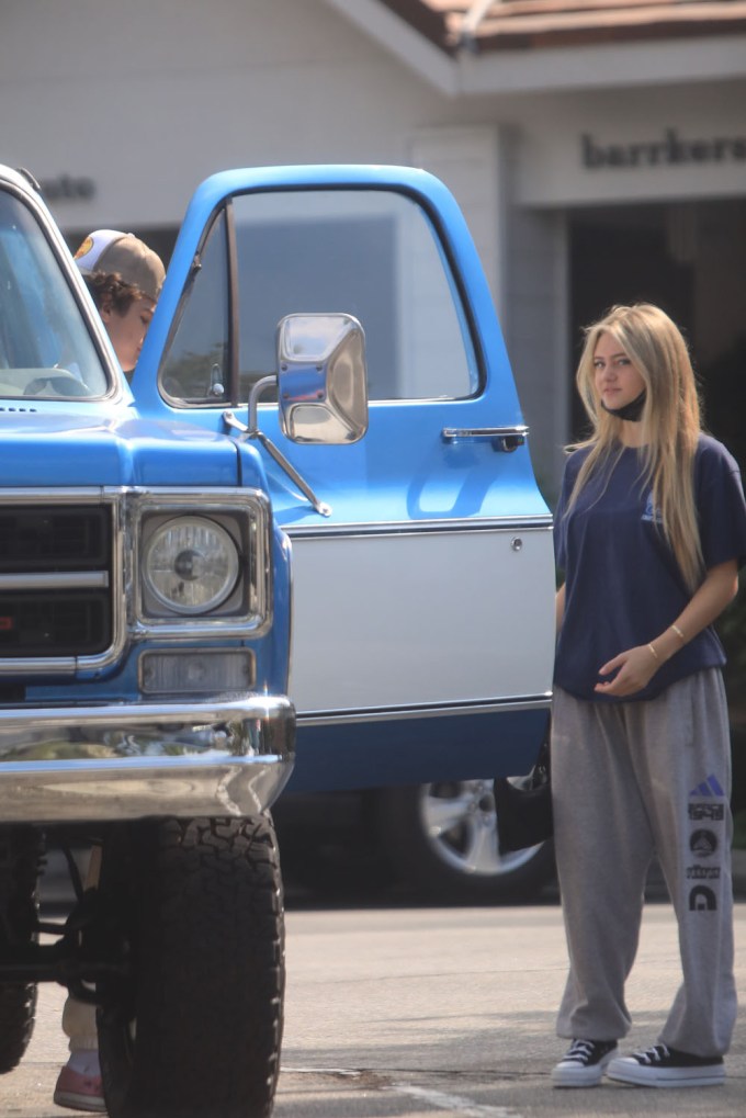 Leni Klum rocks loose sweats and an oversized tee while heading to breakfast with boyfriend Aris Rachevsky. They rode in his vintage pickup truck.