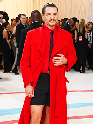 Daddy has arrived. Pedro Pascal stunned onlookers at the 2023 Met Gala, standing out from all the black and white outfits by wearing a stunning red coat and black shorts. And those boots!